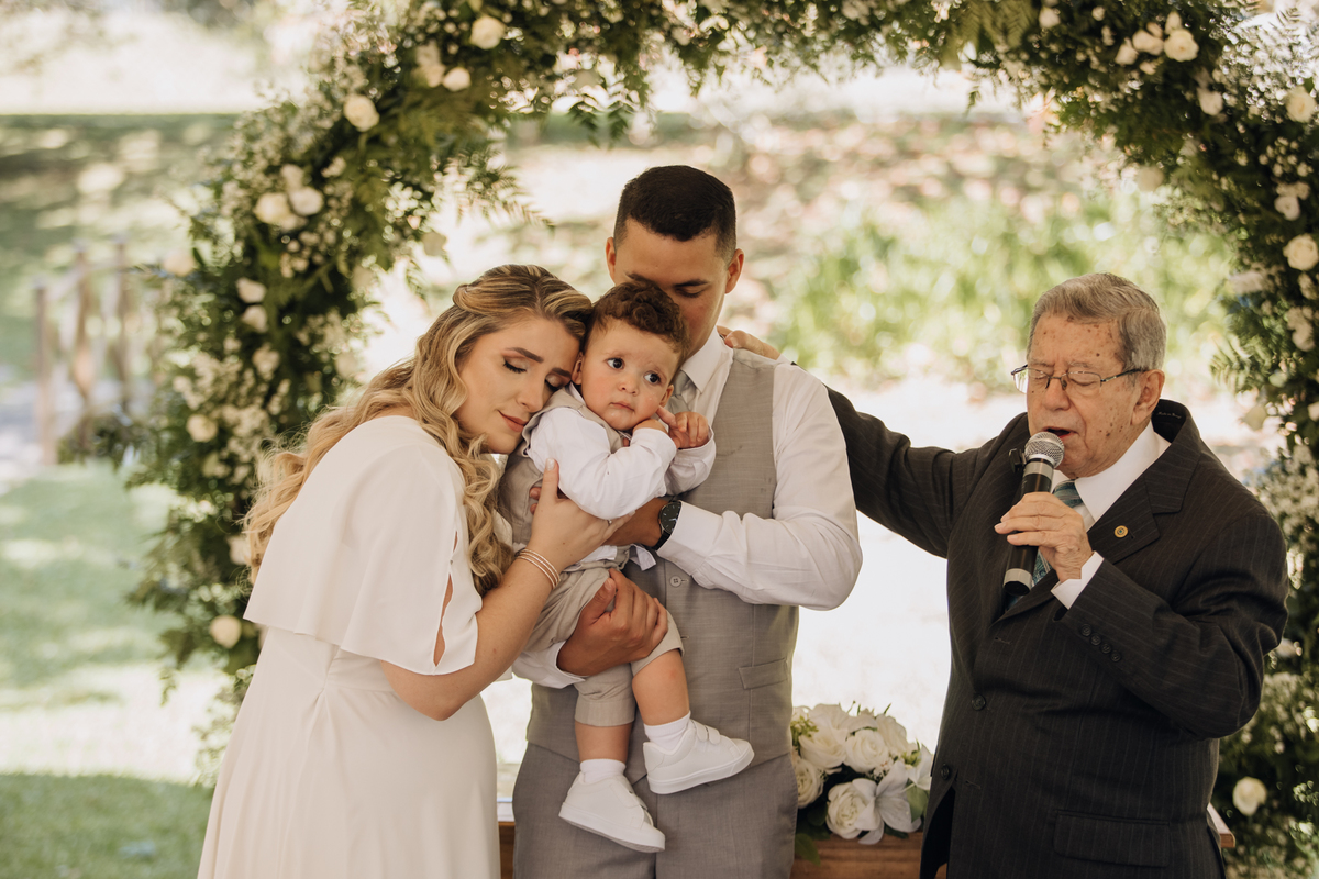 Cariocas, mas vivendo em Curitiba, Aline e Felipe escolheram o Recanto Graça e Paz para uma cerimônia intimista, linda e cheia de emoção para comemorarem seus 10 anos de casado, e também aproveitaram para apresentar ao Senhor seu filho Davi.